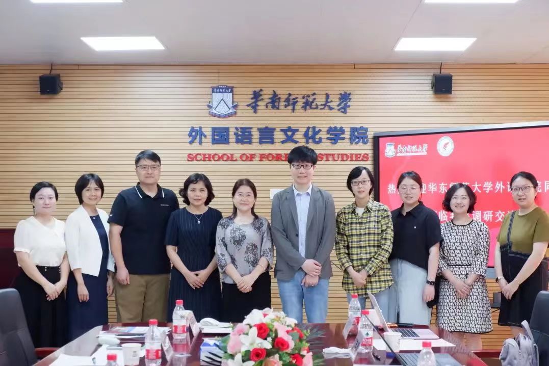 6月15日下午,调研团赴华南师大外国语言文化学院调研,华南师大外国语言文化学院院长谷红丽、副院长黄丽燕、党委副书记陈彦敏、研究生培养指导委员会副主任金檀等与调研团进行座谈交流。谷红丽从历史沿革、学科建设、科研特色发展方向等方面介绍了华南师范大学外国语言文化学院整体情况。张浩敏介绍了必赢线路检测3003no1的近年来的重点发展方向。随后,黄艳丽介绍了华南师大研究生培养和导师队伍建设情况,重点以教育硕士培养为例,介绍了研究生培养的“443”专业学习共同体的建设。金檀详细介绍了研究生开题环节及答辩环节严格的过程管理机制。陈彦敏介绍了促进思政教育精细化、以赛促学常态化、社会实践品牌化、关爱学生体系化等方面的做法和经验。交流环节,双方就跨学科研究、研究生培养过程管理、思政教育、第二课堂活动展开及就业推进情况进行了交流讨论。