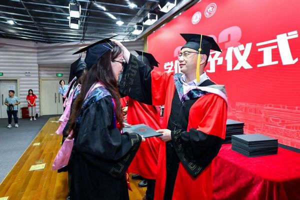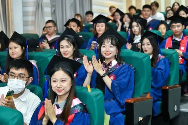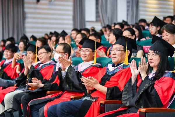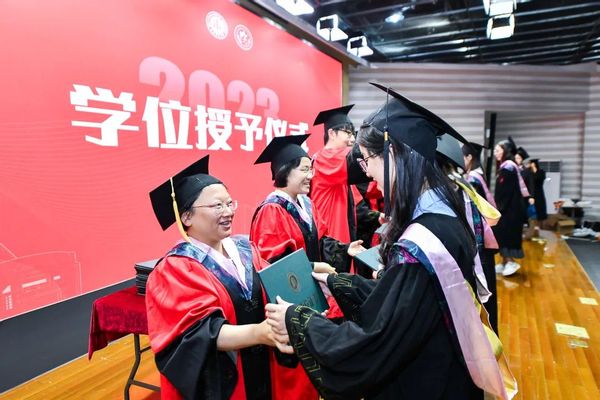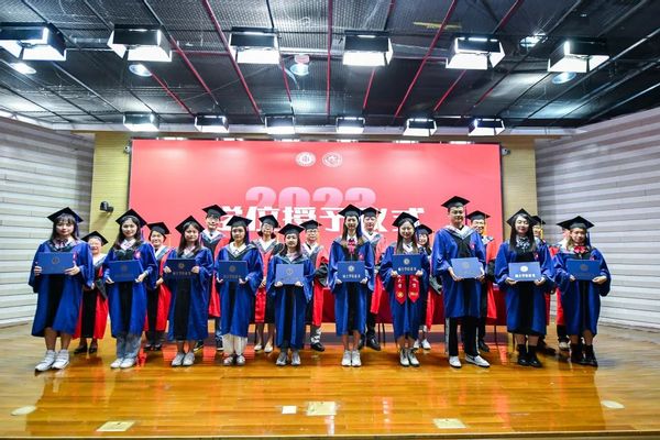 现场还举行了毕业生学位授予仪式,在场教师为毕业生们颁发学历学位证书并合影留念。