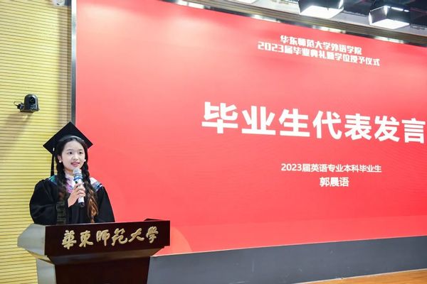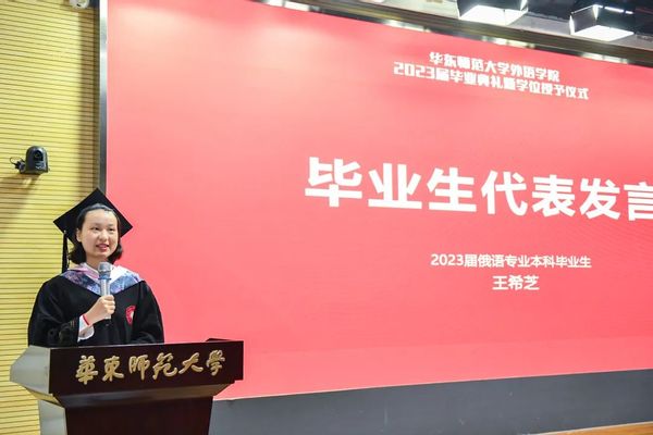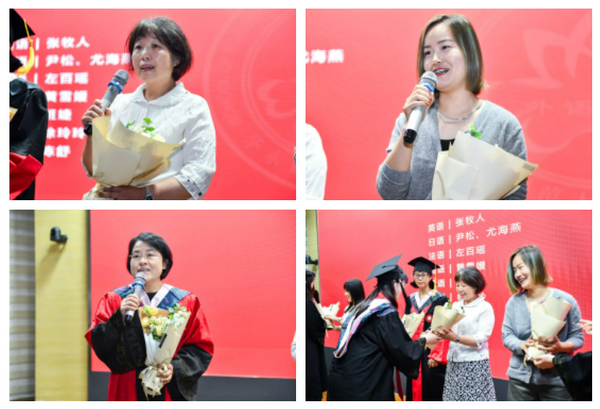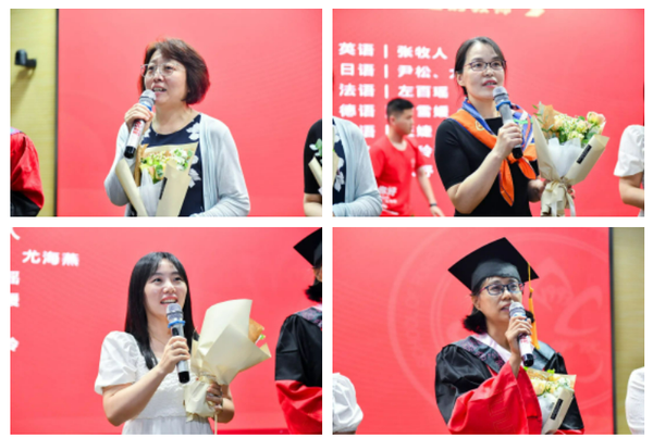 英语专业本科生郭晨语、俄语专业本科生王希芝、日语语言文学专业硕士研究生邓楚涵作为学生代表发言。
