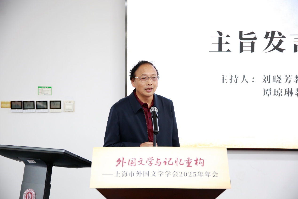 韩春红书记首先代表承办单位,对与会专家、学者和师生表示热烈的欢迎。韩书记特别以“三张名片”概括了学院外国文学研究的特色:一是以“丽娃河畔的翻译家群”为代表的深厚的外国文学翻译与研究传统;二是学院近年来积极打造的活跃而开放的多语种文学研究学术共同体。文学研究团队通过“大夏外国文学研究交锋论坛”“聚学讲坛”及“攀峰计划”沙龙等系列品牌活动,持续推动学术交流和创新;三是当下文学研究团队正着力推进的以“四个服务”为导向的文学研究转型,推动外国文学研究服务区域国别学建设、教育高质量发展、地方经济社会发展,以及学校新兴学科布局。她强调,在抗战胜利80周年的特殊历史节点,本次年会以“外国文学与记忆重构”为主题,无疑具有深远的意义。