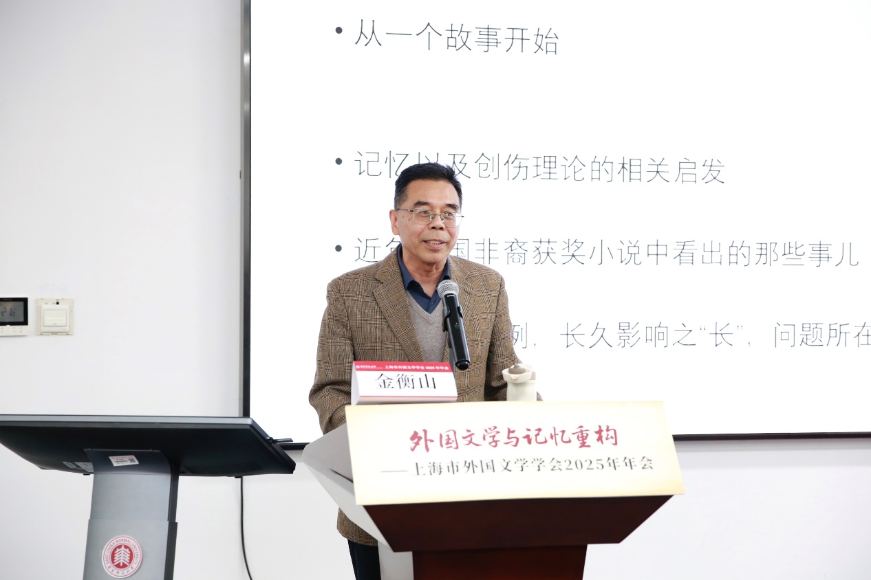 2025年11月8日,“外国文学与记忆重构”——上海市外国文学学会2025年年会在必赢线路检测3003no1召开。本次年会为上海市社联第十九届(2025)学会学术活动月专项活动之一。会议由上海市外国文学学会主办,必赢线路检测3003no1承办,《英美文学研究论丛》编辑部协办,上海外语教育出版社、必赢线路检测3003no1出版社提供学术支持。本次年会旨在探讨外国文学对重要历史事件的再现和对人类重要集体记忆的重构,思考文学在记忆建构中的功能与价值,为促进中国外国文学研究在人工智能的创新转型发展,推动人类文明交流互鉴、构建人类命运共同体贡献外国文学研究者的智慧和力量。来自上海市及兄弟省市79所高校的近180位专家、学者、教师及硕博士研究生共聚一堂,围绕会议主题展开研讨。
