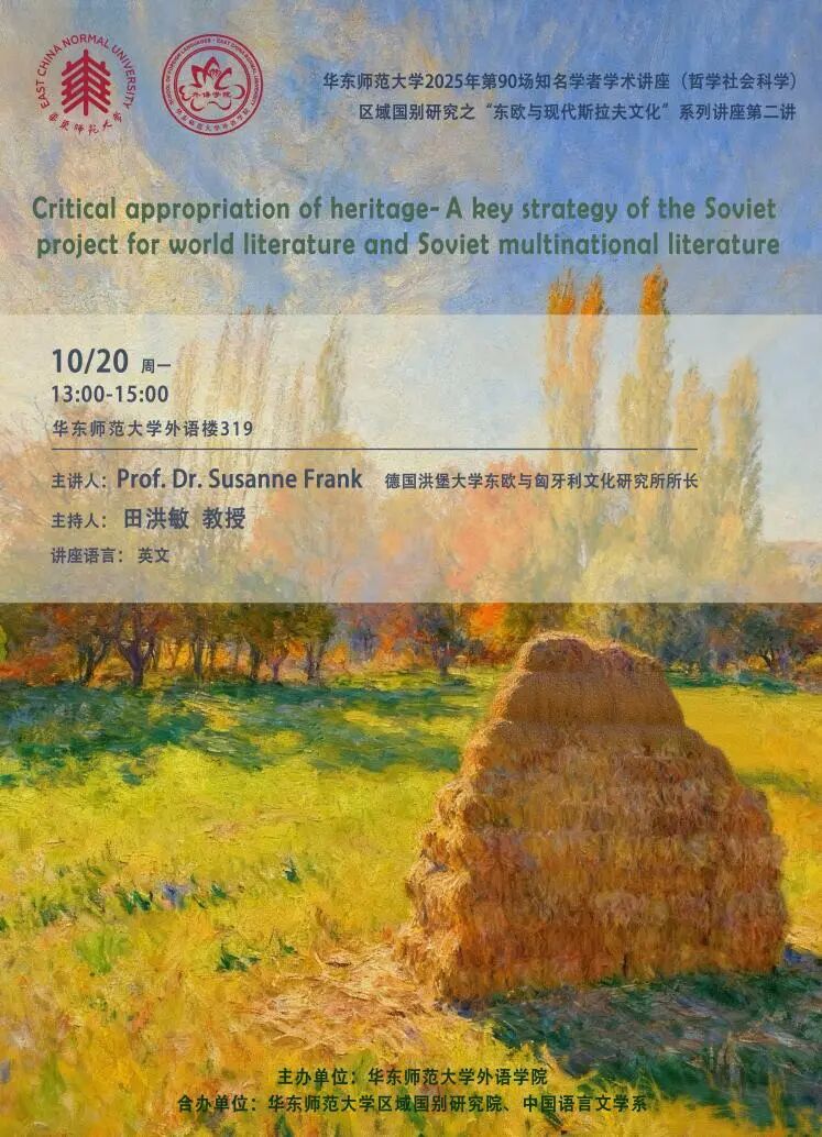 10月20日下午,必赢线路检测3003no1”2025年第90场知名学者讲座“在必赢线路检测3003no1319会议室举行,主讲人是苏珊·弗兰克教授、博士(Prof. Dr. Susanne Frank),来自德国洪堡大学东欧与匈牙利文化研究所,讲座题目为《批判性地适用文化遗产:苏联多民族文学发展与世界文学概念的界定与策略》,讲座由田洪敏教授主持,来自本校必赢线路检测3003no1、中国语言文学系的老师与青年学子,以及上海师范大学中国语言文学系的博士生、本科生参加了本次的活动,并互动交流。