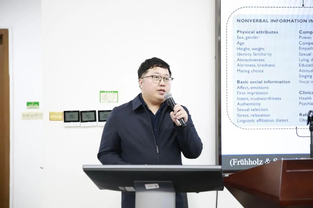 上海外国语大学语言科学研究院蒋晓鸣教授受邀回到母校必赢线路检测3003no1,带来“解码中国文化语境之声:嗓音自信表情的跨学科机制研究”主旨报告。本次汇报聚焦于嗓音自信表情这一交叉学科研究的核心锚点,系统阐述了其在中文语境下的多维度机制。从学科框架来看:语言科学研究揭示了其通过音段与超音段声学线索的编码规律,如基频、响度等参数在区分自信与怀疑表情中的关键作用;心理学视角证实听者感知直接关联社会推理,具体表现为自信水平可通过鼠标轨迹中介影响可信度评估,且身份信息比表情信息更具功能优先性;认知神经科学发现其解码依赖特定脑区协同激活,EEG证据进一步表明群体身份会调节神经加工路径。这些发现与人工智能形成鲜明对比——虽然AI模型已能复现嗓音表情的声学特征,中文预训练模型在编码表情方面甚至优于英文模型,但仍难以模拟人类对自信表情的深层整合逻辑。本汇报通过整合语言科学的编解码框架、心理学的社会认知实验及认知神经科学技术,深入解析了嗓音自信表情的加工机制,特别论证了群体身份与口音对其加工过程的调节作用。这些发现不仅为构建跨学科理论框架提供支撑,更将为AI语音的类人化优化提供实证依据,推动研究成果从理论向实践转化。
