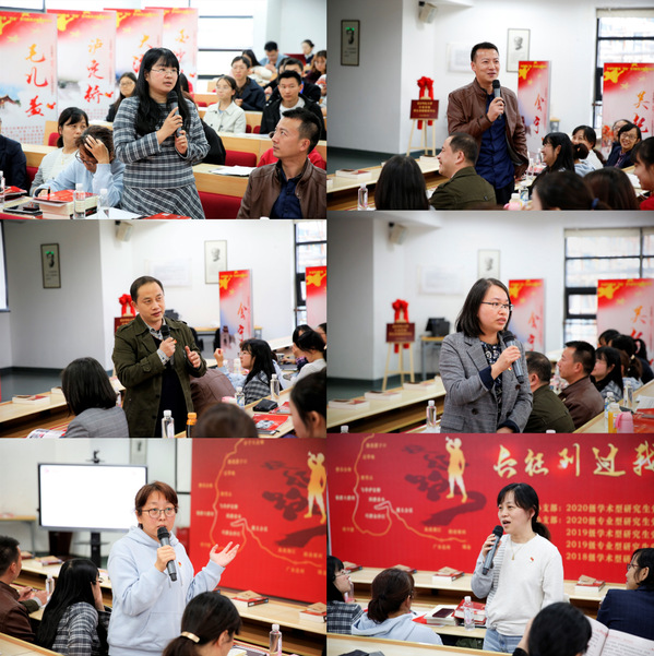 各专业老师针对六个语种的长征故事给予了积极的点评,金晶肯定了以“半条被子”为切入点讲述鱼水深情这种以小见大的讲述方式,鼓励青年党员向革命前辈学习,不忘初心,发扬长征精神,通过努力不断完善提升自我;杨建培铿锵有力地用德语朗诵了连州红军的事迹,勉励同学们以革命先辈为榜样,为实现民族复兴的伟大梦想而奋斗;班婕肯定了同学们准备四渡赤水故事付出的努力,鼓励同学们在扎实学习语言的同时,多了解世界各国的文化和历史,成为具有优异综合素养的外语人;赵朝永高度评价了泸定桥故事组织和表达,肯定了此次活动对于思想引领和专业学习的意义并希望同学们把在此次活动中得到的感动和激励带到日常学习中去;徐泉赞赏了腊子口战疫的主题选择和语言表达,鼓励同学们认真学习,向世界传递中国声音,展现中国青年的精神风貌;徐岚教导外语专业的同学不仅要学好外语,更要了解中国,要了解我们的文化、历史,为讲好中国故事奠定深厚的基础。