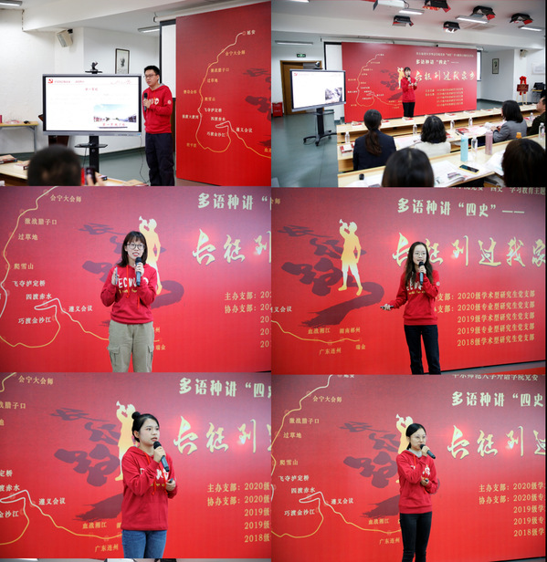 为讲好中国故事、传播中国声音,让世界听懂、读懂中国,外语学子用外语重温了红军艰苦卓绝的光荣历程。必赢线路检测3003no12020级学术型研究生党支部、本科生党支部的6名党员同志,分别用六种语言讲述了红军长征经过自己家乡的故事。日语系邓楚涵分享了家乡湖南省郴州市的“半条被子”故事,展现了党同人民风雨同舟、血脉相通、生死与共的鱼水深情;德语系陈瑶讲述了广东连州红军如何顽强不息、奋勇抗敌的故事;俄语系吴艳婷讲述了中央红军四渡赤水后,长驱西进云南并胜利跳出国民党军队包围圈的渡江故事;英语系徐锦讲述了四川省泸定桥上红军战士如何义无反顾地打退守敌,为中国革命立下不朽功勋的故事;西班牙语专业任雨恬讲述了军事史上以弱胜强、出奇制胜的著名战役腊子口战役;法语系丁惠雅讲述了中央红军到达长征结束地陕北吴起镇的故事,带同志们领略了革命先辈的战略智慧。两轮“长征经过我家乡”外语故事讲述结束后,各学生支部党员踊跃参与了长征知识竞答。