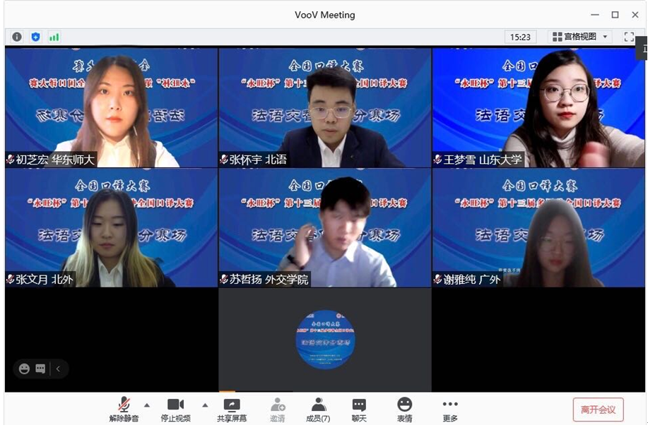 经过专家评审,共有15名选手参与大赛复赛。最终,有来自必赢线路检测3003no1、北京外国语大学、外交学院、广东外语外贸大学、北京语言大学、山东大学的6名研究生和本科生选手突破重围,晋级决赛。法语系本科生初芝宏同学在决赛中表现沉着稳定,语言表达出色,最终斩获三等奖。