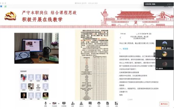 在疫情中,西班牙语教研室以团队为单位,紧密团结起来,对“全面在线教学”这一新事物开展线上会议。老师们纷纷围绕着具体课程发表了自己的看法,准备分工合作,集体备课,以饱满的精神来迎接新挑战。通过一句句习语和谚语,激发学生将不同文化、思想内涵融会贯通的能力;在援引世界经典文学形象的同时,结合《论语》、《孟子》、《道德经》等传统文化的经典思想,传承中华文化的精髓;在了解国际局势的情况下,请同学们分析探索欧盟在防疫中采取的措施,以此提高学生报刊文献阅读水平,培养国际视野。徐泉老师说,在线教学中不仅要注重知识的传授和能力的养成,更需注重培养学生正确的世界观、价值观、人生观,提升其民族自豪感和文化自信心,并有意识地训练其获得批判性思维的能力。