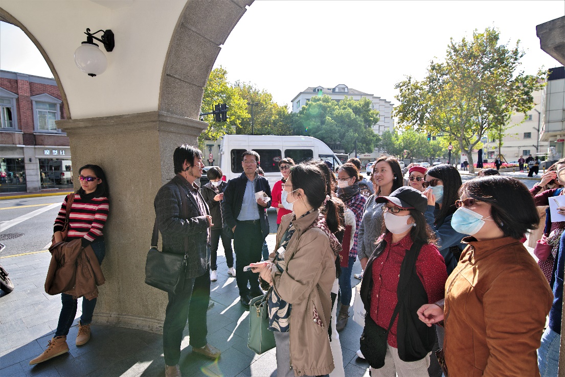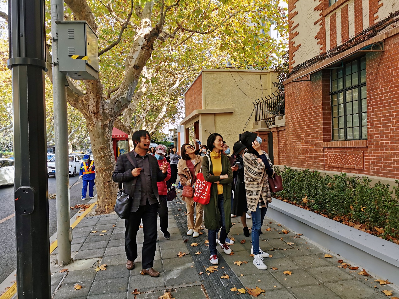 11月10日,主题为“中国历史文化名街系列武康路人文之旅”的秋日游学活动在“上海的名片”武康大楼下拉开了帷幕。上海“建筑可阅读”宣传大使周培元副教授担任行走导师,带领外院的老师们边走边讲解,沿着武康大楼--意大利驻沪领事馆--黄兴旧居(世界社)--巴金故居--颜福庆旧居--谭垣旧居,一直抵达上海保存最为完好的老洋房之一丁香花园。