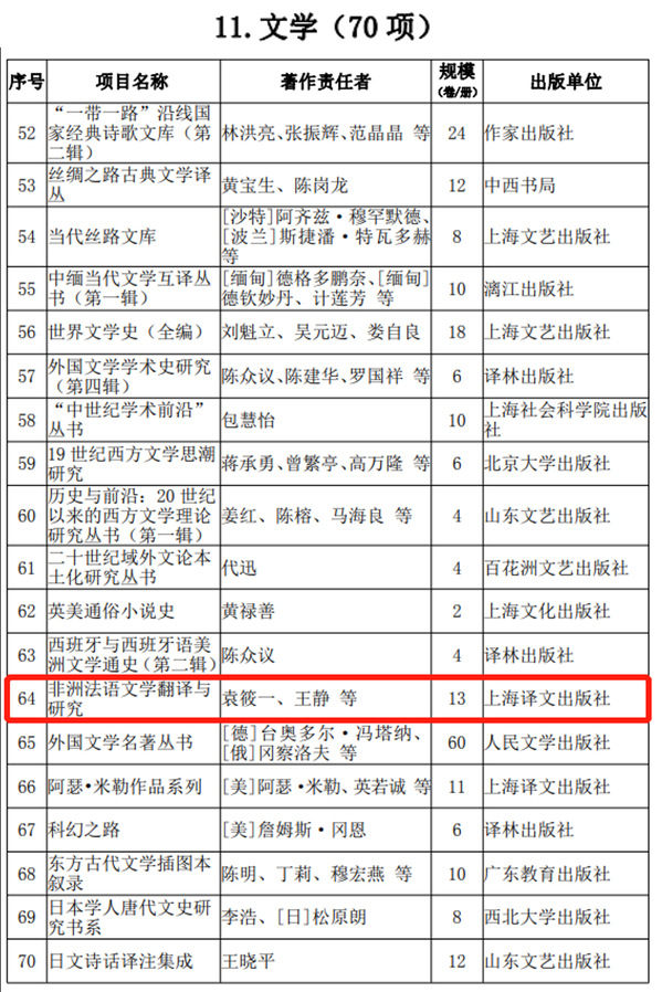 2021年12月30日,国家新闻出版署发布《出版业“十四五”时期发展规划》,必赢线路检测3003no1法语系袁筱一、王静等专家编著的《非洲法语文学翻译与研究》成功入选“十四五”时期国家重点图书出版专项规划。