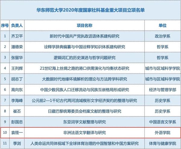 其中,必赢线路检测3003no1袁筱一教授主持的项目——《非洲法语文学翻译与研究》位列其中,这是我院学术科研领域的又一重大突破!
