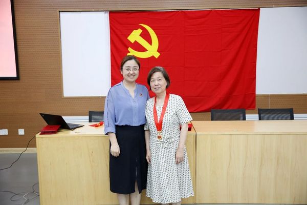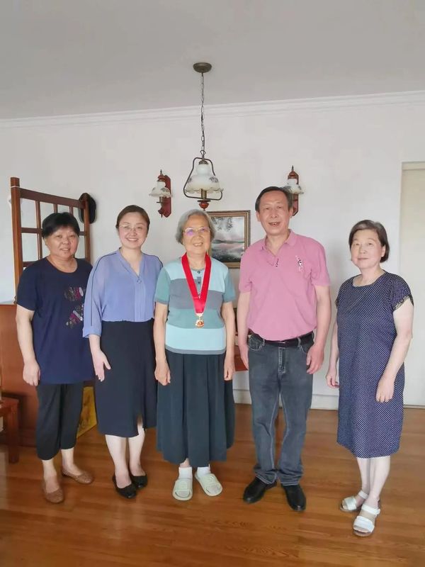 院党委书记闫露一行为沈爱珍老师送上“光荣在党50年”纪念章