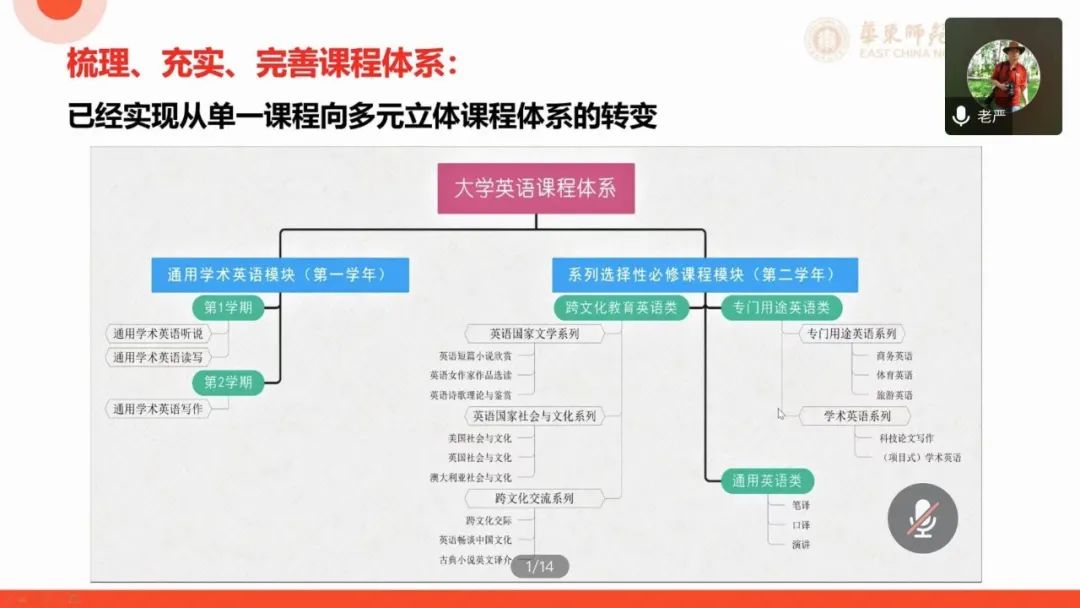 在发言中,严老师还介绍了大学英语教学部响应我校“关于开展卓越育人工作的通知”精神,在卓越育人尤其是在课程卓越方面所进行的思考及建设路径:1.反思培养路径,落实卓越育人2.以本硕博贯通的视角,打造一体化、可衔接的课程体系。