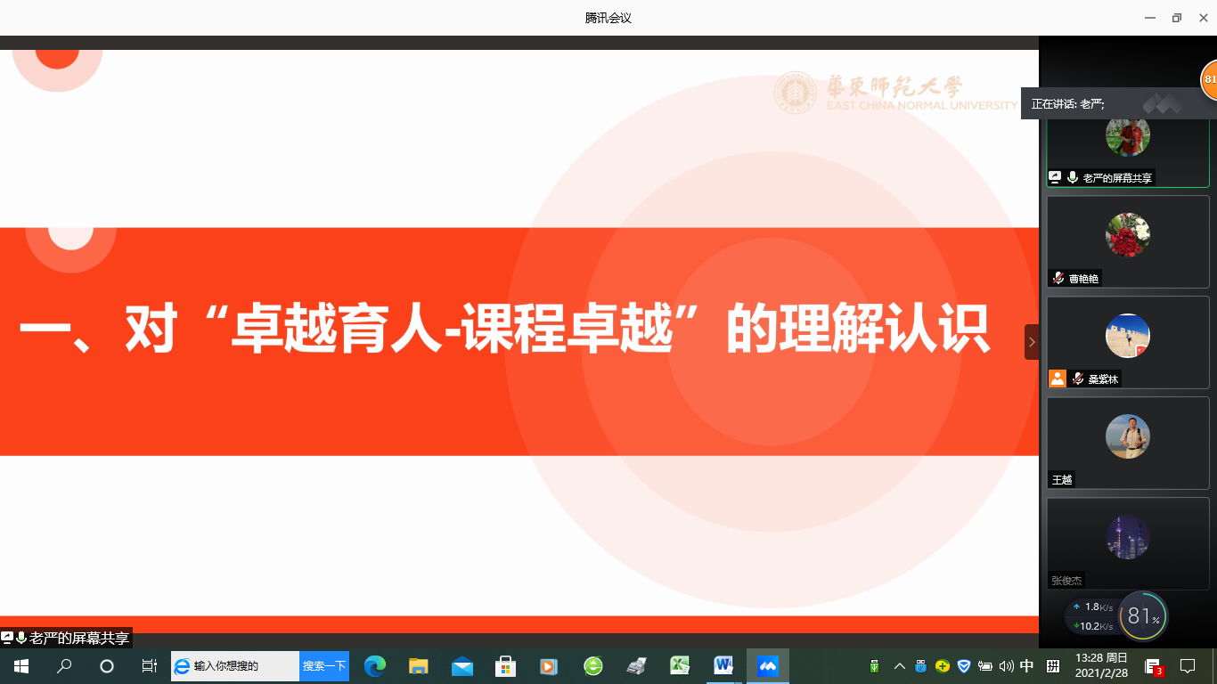 严文庆主任在“卓越育人:思维导向的课程卓越”的主旨发言中,传达了我校“关于开展卓越育人工作”的通知精神,分享了各教学团队对上学期工作的总结与反思,回顾了充实而忙碌的寒假各项工作的开展情况,阐述了对“卓越育人—课程卓越”的认识,并且通过学习东西方教育专家对思维培养的研究成果,结合大学英语系列课程的实际情况,重点围绕批判性思维及创造性思维,提出了培养路径与策略方法。针对“全球视野,面向世界一流”的学校定位,提出了大学英语卓越课程建设路径:系统梳理课程体系、革新教学内容与教学手段、对标设计第二课堂活动方案,实现超越知识点的传授,强化自由、全面的思维和能力教育。