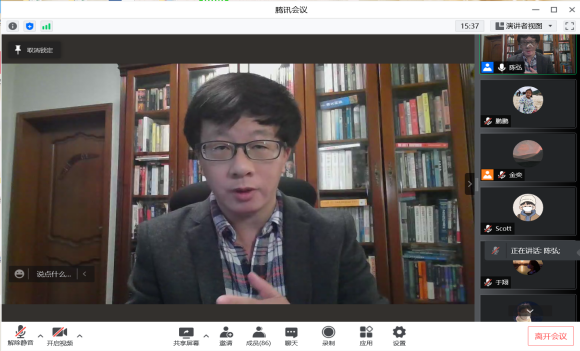 “坦荡地面对不确定性”。这是英语系主任陈弘对同学们的寄语。当生活节奏受到影响、不同往常时,更要想想怎么掌控它。陈弘老师以自身经历,勉励大家充实地度过每一天。陈弘老师还提到,每个人都是这场抗疫斗争的一份子,我们需要的不是互相指责,而是同心共情,齐心努力。
