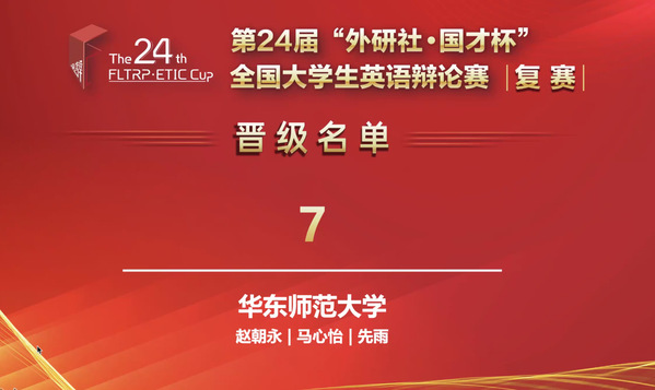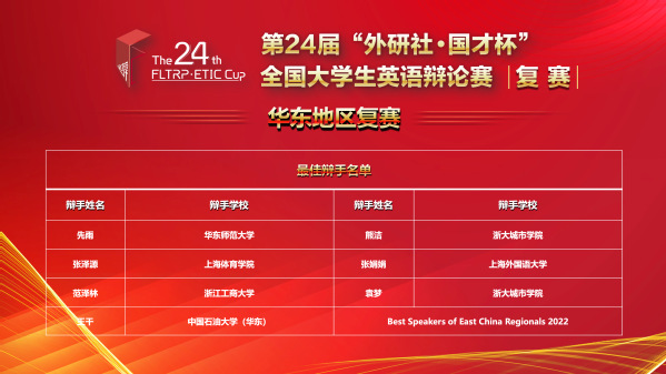 2022年4月9日至10日,第二十四届“外研社·国才杯”全国大学生英语辩论赛华东地区大区赛顺利举办,来自122所高校的244名辩手进行了为期2天、连续5轮辩论的激励比拼。最终,在必赢线路检测3003no1赵朝永教授指导下,我校代表队选手马心怡(2021级外国语言学及应用语言学专业硕士研究生)和先雨(2019级英语专业本科生)总积分在122个队伍中排名第7名,取得华东地区赛“一等奖”的好成绩,晋级全国总决赛。与此同时,先雨同学还获得了“最佳辩手”的荣誉称号(244位选手中共评选7位)。