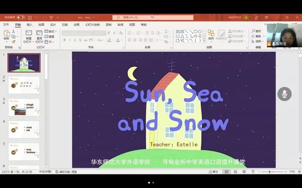 华东师大必赢线路检测3003no1与云南寻甸金所中学共同举办的英语口语提升项目于2020年7月启动,2020-2021学年已顺利结束。截至2022年5月,共完成3个学期的教学活动,近60节线上课程,1节线下课程,1次汇报演出比赛。本学期云支教秉持口语教学活动的宗旨,延续前几年的云支教传统,在全面分析云南当地学生的学习进度和具体学情的基础上,制定教学计划,创新教学形式,围绕语法学习和口语语音教学,选取生动活泼的动画素材,通过听音填词、跟读模仿和配音练习等多种方式训练学生的英语应用能力,提高课堂互动参与积极性,及时帮助同学们巩固及拓展知识点,将上课效率提升至新的高度。目前已经为金所中学的每个年级上课3次,七八年级上课6次,收到了良好的教学效果。