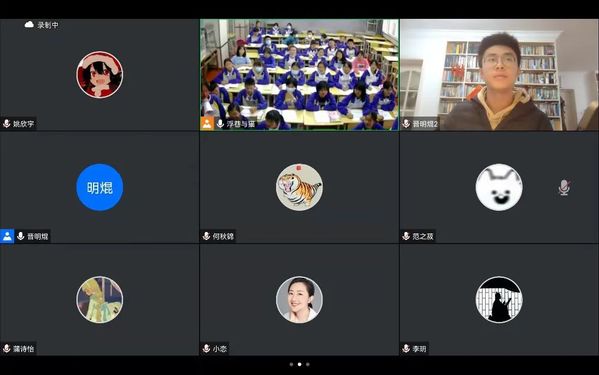 此次云支教的志愿者老师们由来自华东师大必赢线路检测3003no1英语和翻译专业的研究生组成,同时为了拉近与当地学生的距离,提供朋辈指导,团队邀请了华东师大二附中的晋明焜同学加入其中。志愿者老师们有趣的授课内容吸引同学们聚精会神地听课,耐心的发音纠正也使得同学们更加放心地开口练习口语。