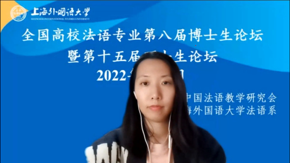 2022年5月8日,由中国法语教学研究会与上海外国语大学法语系联合举办的全国高校法语专业第八届博士生论坛暨第十五届硕士生论坛在线上顺利举行。本次论坛主题为“国际合作:探寻人类共同的未来”,分博士生专场与硕士生专场。我院法语系2020级博士生王婉媛同学的论文 «  Les intellectuels chinois francophones pendant la République de Chine et la traduction de la littérature chinoise moderne en français : étude du cas de Xu Zhongnian » (《民国时期留法学人对中国现代文学的法语译介——以徐仲年为例》)顺利通过初审,喜获二等奖。