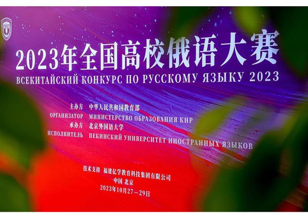 2023年10月28日-30日,2023全国高校俄语大赛在北京外国语大学举行。本次比赛是由教育部国际合作与交流司主办,北京外国语大学承办,来自全国158所高校的392名俄语专业在读本科生和研究生参赛。全国高校俄语大赛是中俄人文教育领域交流与合作的机制化项目,自2008年以来已成功举办十五届。大赛设低年级组、高年级组、研究生组三个组别,初赛为线上进行,复赛、决赛10月28日至29日在北京外国语大学举行。