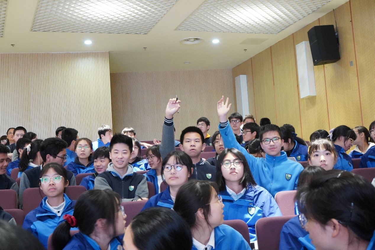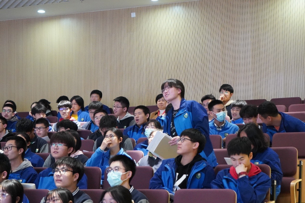 问答交流环节,田园高中的同学们与宣讲团成员积极互动