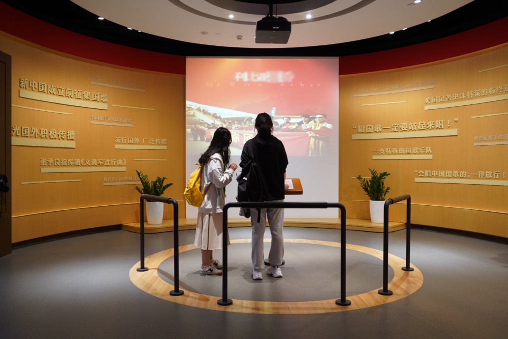 国歌展示馆是全国首家以《义勇军进行曲》为主题的展示馆。展示馆的广场以“唱片”为造型,寓意着歌声从上海唱响全中国。馆内以国歌故事为主线,全面展示了《义勇军进行曲》诞生的背景、词曲作者——田汉和聂耳的生平经历等知识,让师生们领略了《义勇军进行曲》从电影《风云儿女》的主题曲到成为中华人民共和国国歌的不平凡的历程。