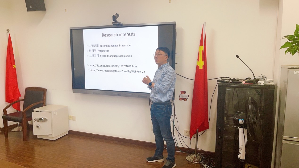 5月12日,北京航空航天大学外国语学院任伟教授应邀莅临我校必赢线路检测3003no1,向我院师生开展题为《二语语用前沿研究》的语用学专题讲座。讲座由何刚教授主持,学院部分博士生和硕士生参加了此次讲座。