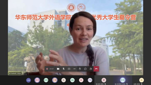 此外,本届夏令营通过一场场精彩纷呈的学术讲座,为营员们打开了一扇扇通向学术世界的大门。罗峰老师为营员们带来了题为《赫利俄斯的龙车:欧里庇得斯的译读》的讲座,她指导营员在解读文本时不要人云亦云,而要根据文本细节进行深入挖掘。刘晓峦老师为营员们作了题为《交叉学科视角下的语音学》的讲座,分享了从发现问题到得出结论的研究流程,鼓励营员们多观察日常生活中的语言现象,找到兴趣点并广泛拓展阅读。胡学星教授以俄语长句的翻译为例,在研究思路及方法上对营员进行点拨,鼓励营员创新思维、开阔眼界,从研究中发现问题,用问题引导研究。Celine老师为营员们带来讲座《学习翻译:不仅仅是“做翻译”》,教导同学们翻译练习的目的不仅仅是为了成为一名译者,而是在学习的过程中养成多种让人受益无穷的终生习惯。冯晓春老师以“九叶派”女诗人陈敬容为例,阐述了20世纪上半叶奥地利诗人里尔克对中国现代文学、尤其是新诗创作产生的深远影响,并向营员们推荐了相关经典诗作。讲座还安排了师生互动与问答环节。营员们纷纷表示获益匪浅,备受启发。