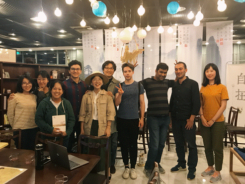 丁雨璐(左一)参加国际阅读小组读书分享会