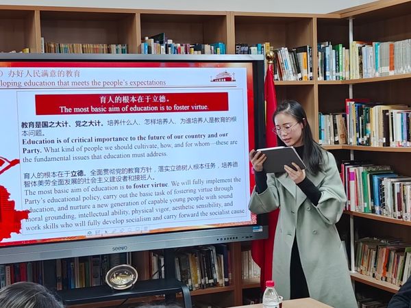 沈伟刚老师以“筑梦前行,我们一直在路上”为主题,以“热爱”、“践行”、“规律”、“反思”、“憧憬”为线索进行了发言。他强调了加快推进教育现代化、建设教育强国的重要性,指出坚持教学的根本动力是热爱教学、热爱学生。沈伟刚老师和支部党员同志一起重温了人民教育家于漪的先进事迹,探讨了如何一辈子做老师,一辈子学做老师。此外,沈老师通过使用生动的教学案例,详细阐释了不同英语教学方法的效果和优劣,得出“知之不如行之”的道理。他强调,教师应该在教学中不断进行反思,在教学的过程中不断提升自我。只有反思才能成就“明师”,只有老师教得明白,学生才能学得明白。