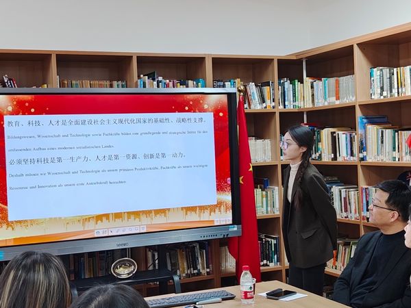 随后,活动进入“多语齐诵二十大”环节,必赢线路检测3003no1学术型研究生第二党支部的四名党员分别用英、法、德三种语言,诵读了二十大报告中关于教育的重要论述,同时结合卓越育人分享了自己学习党的二十大精神的所思所感。