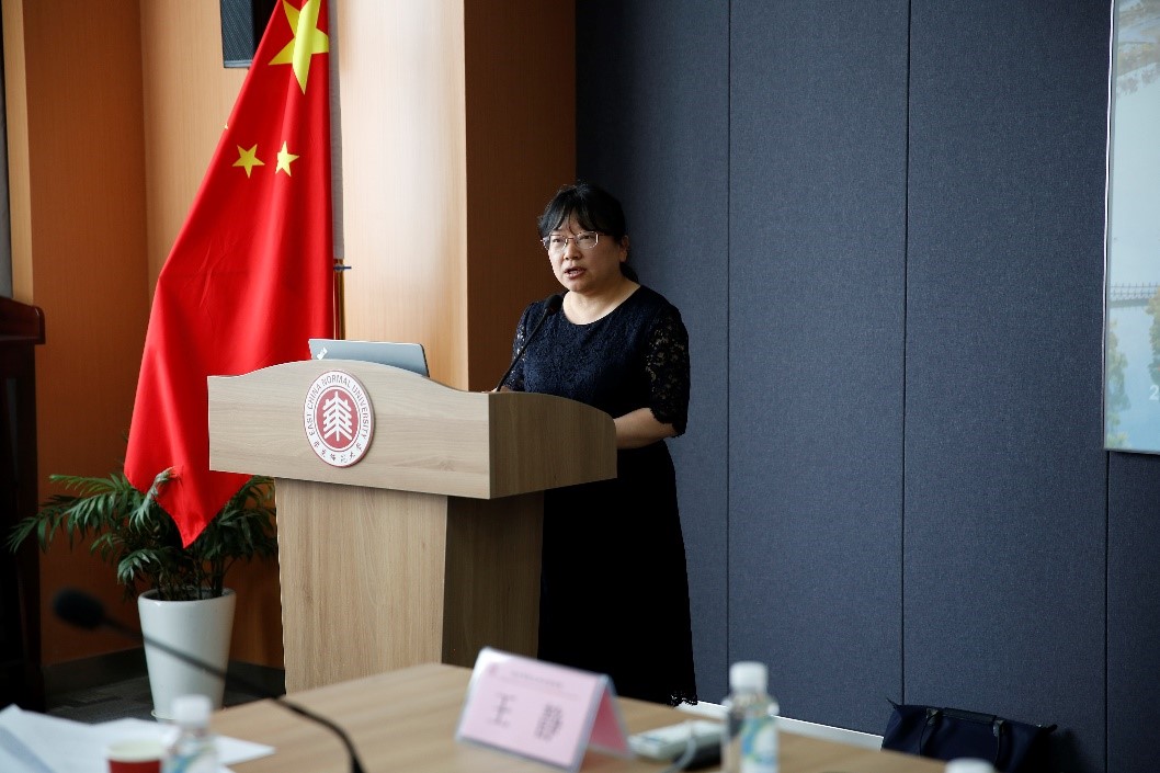 王静教授代表会议主办方发言。她就法语专业的基本情况、法语专业人才培养目标、法语专业的课程体系重塑、法语专业与学校卓越人才培养目标以及法语专业与书院协同的全育人养成方案等问题向在场专家详尽介绍了我校法语系和2021级本科人才培养方案的具体内容。