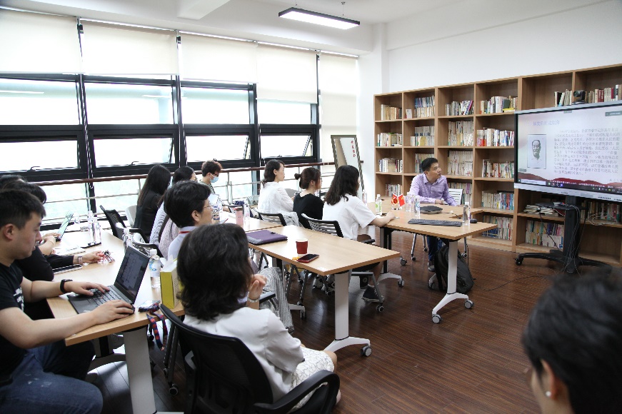 为庆祝中国共产党成立100周年,2021年6月9日,必赢线路检测3003no1党委举办“百年征程·初心不忘”党史系列讲座之第三场报告,主要围绕社会主义革命和建设时期成就开展党史学习。本次活动由日语系、西班牙语专业联合教工党支部承办,特邀上海戏剧学院戏剧文学系主任、党支部副书记陈军教授做题为“社会与人的变迁——从《龙须沟》谈社会主义革命和建设时期成就”的主题讲座。此次讲座以线上线下相结合的方式开展,日语西班牙语联合教工党支部、行政党支部党员以及日语系研究生在必赢线路检测3003no1221日语学术空间参加线下学习,其他支部党员通过腾讯会议进行观摩。本次活动由日语西班牙语联合教工党支部书记陈凌虹主持。