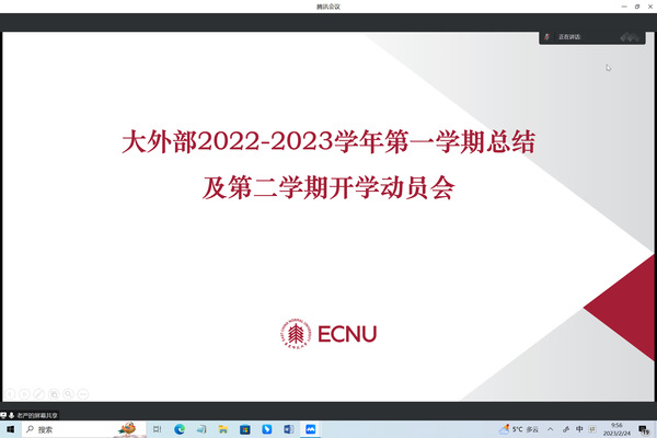 2月24号,大学英语教学部召开线上开学动员会,总结2022-2023学年第一学期教学情况,部署第二学期各项工作。大学英语教学部教工党支部书记苏俊玲主持会议,大学英语教学部主任严文庆做主题发言,副主任胡婧、陈家刚、周小勇分别就主管的工作发言,必赢线路检测3003no1副院长赵朝永做总结发言。全体大学英语教学部教师参加了会议。