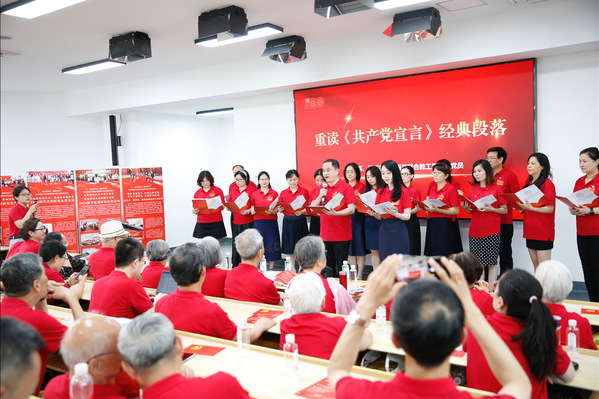法语系、德语系、俄语系联合教工党支部党员重读《共产党宣言》经典段落,重温马克思主义经典著作,体会马克思主义的时代光辉。