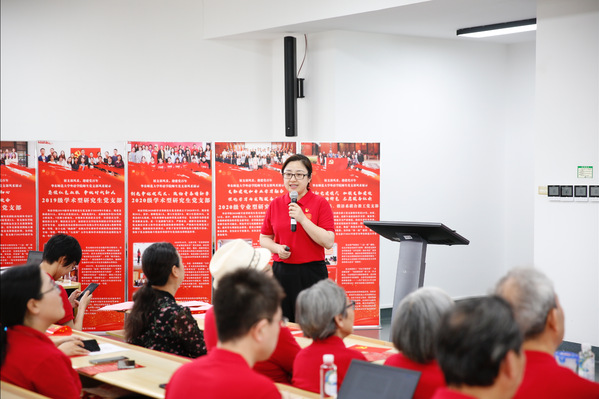 2020级专业型研究生党支部书记原蓉洁、支委曾梦娆汇报展示“党建育人”成果,介绍了支部建设与专业学习融合、理论学习与实践服务并行的先进经验。