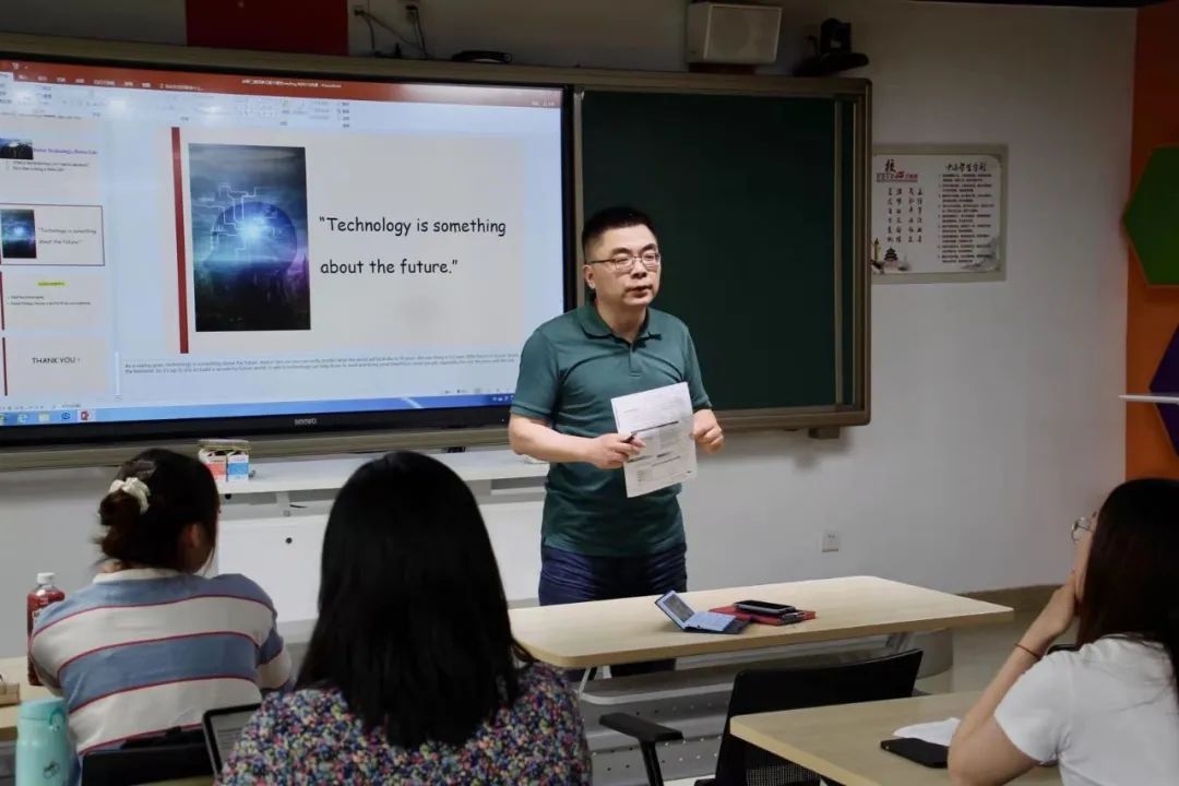 随后,全建强老师对课堂教学展示过程进行点评。他对徐轶菲老师在新教材背景下以单元为中心进行整体教学的设计表示了肯定,并在课堂引入、课堂互动等方面提出了改进建议。
