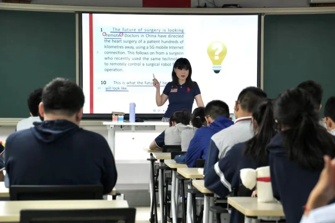 在参观过程中,同学们走进课堂,观摩了敬业中学英语教师、必赢线路检测3003no12006届英语师范毕业生徐轶菲的课堂展示。徐轶菲老师以科学类杂志文摘为文本开展英语阅读教学,希望学生能够了解写作目的、掌握文章写作特征,进而增强对5G技术在医疗领域应用意义的理解。“通过观摩敬业中学老师的真实课堂,我学习到了高中老师的课堂教学方法、课堂的时间分配以及如何科学设计课堂内容和问题来开拓学生思维。”2020级英语师范专业的郭海艳对未来的教师生涯充满憧憬。2019级英语师范专业的金珂欣也表示,“通过一堂英语课,让我对中学英语教学有了更深刻的认识,学到了许多实践性的能力,也让我有了许多想要大胆尝试的新想法。”