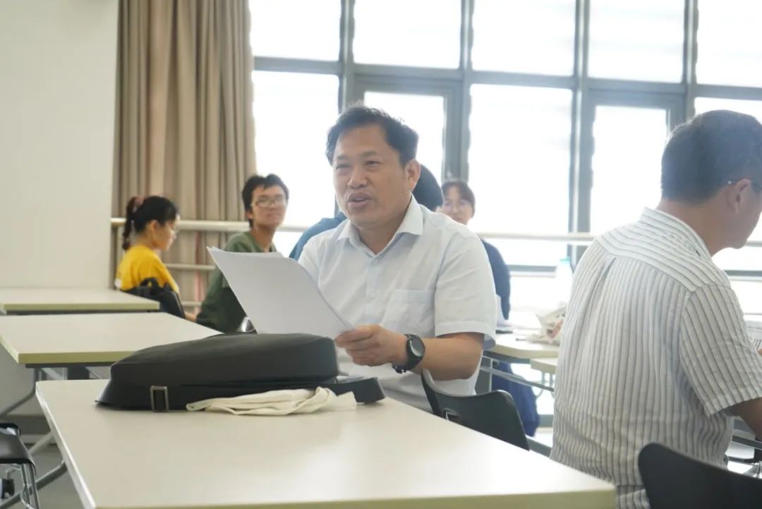 授课展示环节结束后,徐继田、谢忠平两位老师对各参赛团队的教案、授课情况进行了点评。两位老师首先肯定了各位选手优秀的语言水平和专业素养,以及将外语学习和红色基因的良好融合,同时也提出了许多建设性的意见。例如在教学设计中要不断更新教学理念,更加契合当今外语教学发展的趋势;要主动运用先进的教学方法,从学科核心素养入手开展课程教学目标设计,同时对于不同的教学目标需要进行相互整合等。