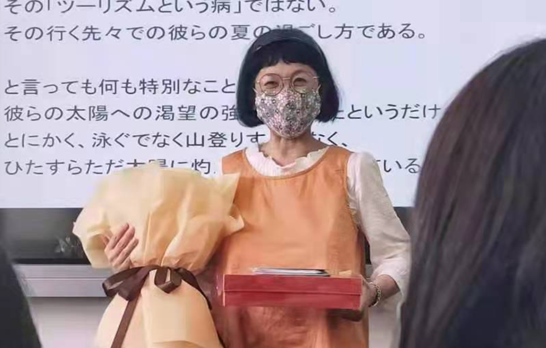 今年6月,岛田老师迎来了她60岁的生日,也迎来了在华东师大日语系的最后一个工作月。8日,本科三年级的同学们在课前悄悄地为可爱的岛田老师送上了他们精心准备的故宫文创以及日语系老师们准备的鲜花。