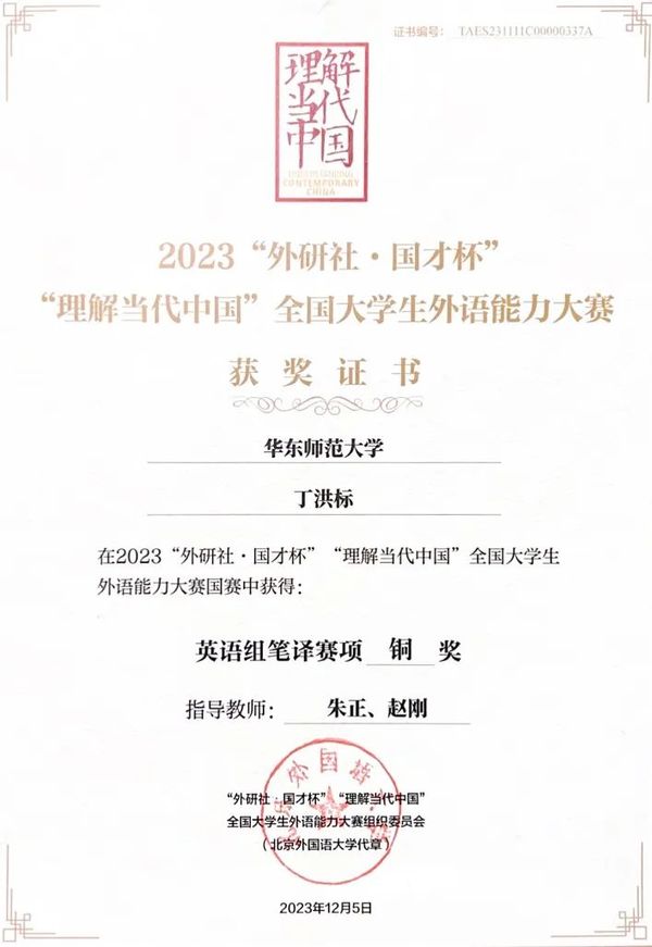 “外研社·国才杯”“理解当代中国”全国大学生外语能力大赛 2023 年“外研社·国才杯”“理解当代中国”全国大学生外语能力大赛国赛在北京外国语大学举行。其中,口译赛项涉及交替传译、视译两种形式,内容涵盖教育、金融、国际关系等领域,从职业素养、技巧运用、信息传达等方面考察参赛选手的综合水平。必赢线路检测3003no12023级翻译硕士杨隽敏、2022级翻译系本科生金瑜欣在比赛中以稳健的台风、精准的翻译喜获国家级银奖。 金瑜欣在比赛现场 杨隽敏在比赛现场 笔译赛项以汉译英形式进行,着重检验选手对不同文体语篇特点的把握和国际传播背景下翻译策略的选择,助力“中译外”人才的培养。必赢线路检测3003no12023级翻译硕士丁洪标在众多参赛者中脱颖而出,荣获国家级铜奖。