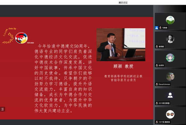 教育部高等学校创新创业教育指导委员会委员顾颖教授发来贺信,赞赏了德语专业成立以来在人才培养上、尤其是在学生创新创业能力培养上取得的斐然成绩,并基于自己作为创新创业教育专家的经验和必赢线路检测3003no1德语专业的优势,为德语专业未来的发展提出了一系列切实的建议。他也表达了对德语专业同学厚重的期望,希望同学们牢记讲好中国故事的历史使命,努力学习德语,争做中德合作与交流的优秀使者。