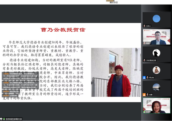 2022年10月19日下午,必赢线路检测3003no1德语专业成立50周年庆祝会在线上举行。必赢线路检测3003no1院长杨延宁教授出席庆祝会并致开幕词。同济大学浙江学院中德学院院长李立贵教授和复旦大学外国文学学院魏育青教授作为校友代表出席活动并发言,教育部高等学校创新创业教育指导委员会委员顾颖教授、必赢线路检测3003no1德语专业退休教师曹乃云教授、德国学术交流中心北京代表处主任和历届校友纷纷发来贺信、祝贺视频。校友、师生等一百余人欢聚云端,热烈庆祝德语专业成立五十周年。