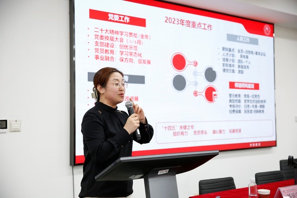 院党委书记闫露通报了学院党委重点工作。本学期,学院党委将持续学习宣传贯彻党的二十大精神,落实巡察整改任务,推进党建工作与中心工作双融合、双促进、双提升;以建院30周年为契机,不断加强文化宣传阵地建设,营造和谐积极向上的学院文化;进一步加强人事工作的整体布局和安排,强化师德师风建设,做好警示教育、典型挖掘与考核评价。