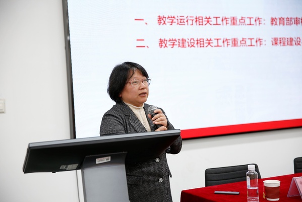 副院长王静从教学运行与教学建设两方面介绍了本学期本科教学重点工作。她希望老师们立足卓越育人,做好新学期教学工作,关注教育部审核性评估,同时发挥专业优势,积极申报各类教学教改项目,力争取得新的成绩。
