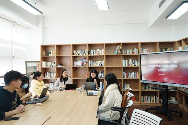 最后,在支部书记冯烨的组织下,各位党员同志以“如何发挥外语专长服务‘国之大者’”为主题进行了热烈的交流讨论。