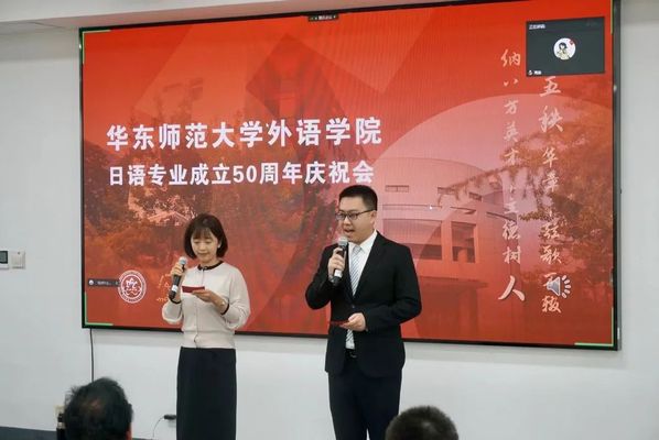 庆祝会在日语系孟令祎老师和研究生邓楚涵主持下,从一段视频拉开帷幕。一张张老照片闪过,照片中承载了日语专业成立五十年以来代代师生的珍贵回忆,在场师生也借此回顾了院系成立的历程。随后,九州共立大学校长助理沙秀程教授、苏州大学日语系主任王鼎教授等几位海内外校友通过视频形式献上了他们对日语专业成立50周年的祝福。