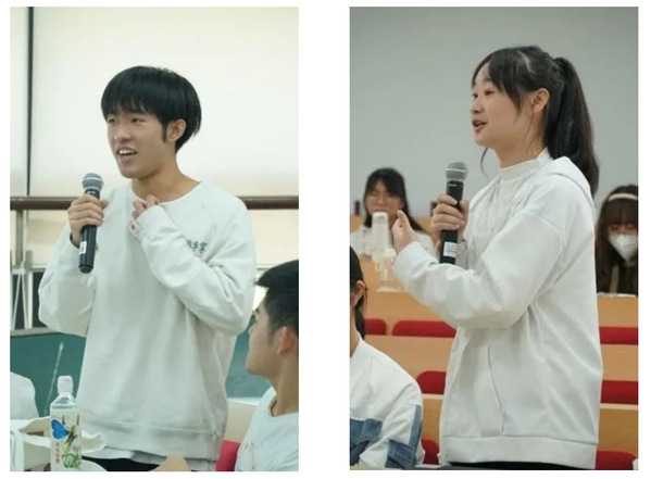 郭侃亮老师则称自己为一个节点见证者,正是郭老师在读期间华东师大日语系从普陀搬到了闵行校区,2004级的学生们不仅曾在丽娃河畔居住,也亲历了闵行校区的建设。虽然初期闵行校区的建设还未全部完成,但还是能让学生们感到一种强烈的归属感。老师们在课堂上认真负责的同时,私下也会与学生们有许多交流。郭侃亮老师还分享了当年参加第二届“中华杯”日语演讲大赛、靠不服输的精神最终获得了一等奖的故事。郭侃亮老师说自己许多兴趣爱好的起点都是大学阶段,并与现场两位同学进行了互动,他强调大学这个阶段给了我们去试错、去创造、去尝试的机会,因此除了学习以外,期望同学们也能够合理利用自己在校园中的时光去寻找自己的兴趣和梦想,成长为一个有丰富生活的人。