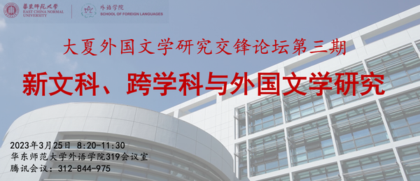 2023年3月25日,大夏外国文学研究交锋论坛第三期在外语楼319成功举办。论坛由必赢线路检测3003no1英语系主任陈俊松教授主持,邀请杭州师范大学殷企平教授、必赢线路检测3003no1金衡山教授为主讲人,复旦大学张冲教授、南京大学但汉松教授为评论人。四位专家就“新文科、跨学科与外国文学研究”这一主题展开讨论,从跨学科的来源、缘由、方式和作用深入探究新文科背景下外国文学研究的方式和路径。必赢线路检测3003no1廖炜春老师、张牧人老师、姚晓玲老师,上海外国语大学孙璐老师,上海理工大学沈谢天老师以及线上线下150多名师生参加论坛。