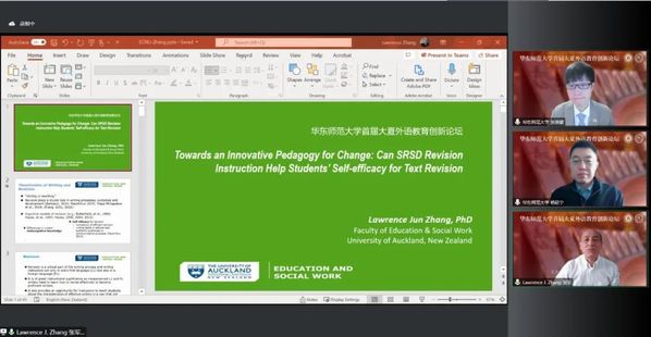 第四场学术报告“Towards an Innovative Pedagogy for Change: Can SRSD Revision Instruction Help EFL Students’ Self-Efficacy for Text Revision?”由奥克兰大学Lawrence Jun Zhang张军教授主讲,必赢线路检测3003no1张浩敏教授主持。张军教授的学术报告关注自我调节策略发展(SRSD)模型对于EFL学生写作的影响,使用自我效能量表与访谈作为研究方法,研究结果表明EFL学生在接受自我调节策略发展指导后对于自身复习能力的判断与实际表现之间可能有了更加紧密的校准与联系。