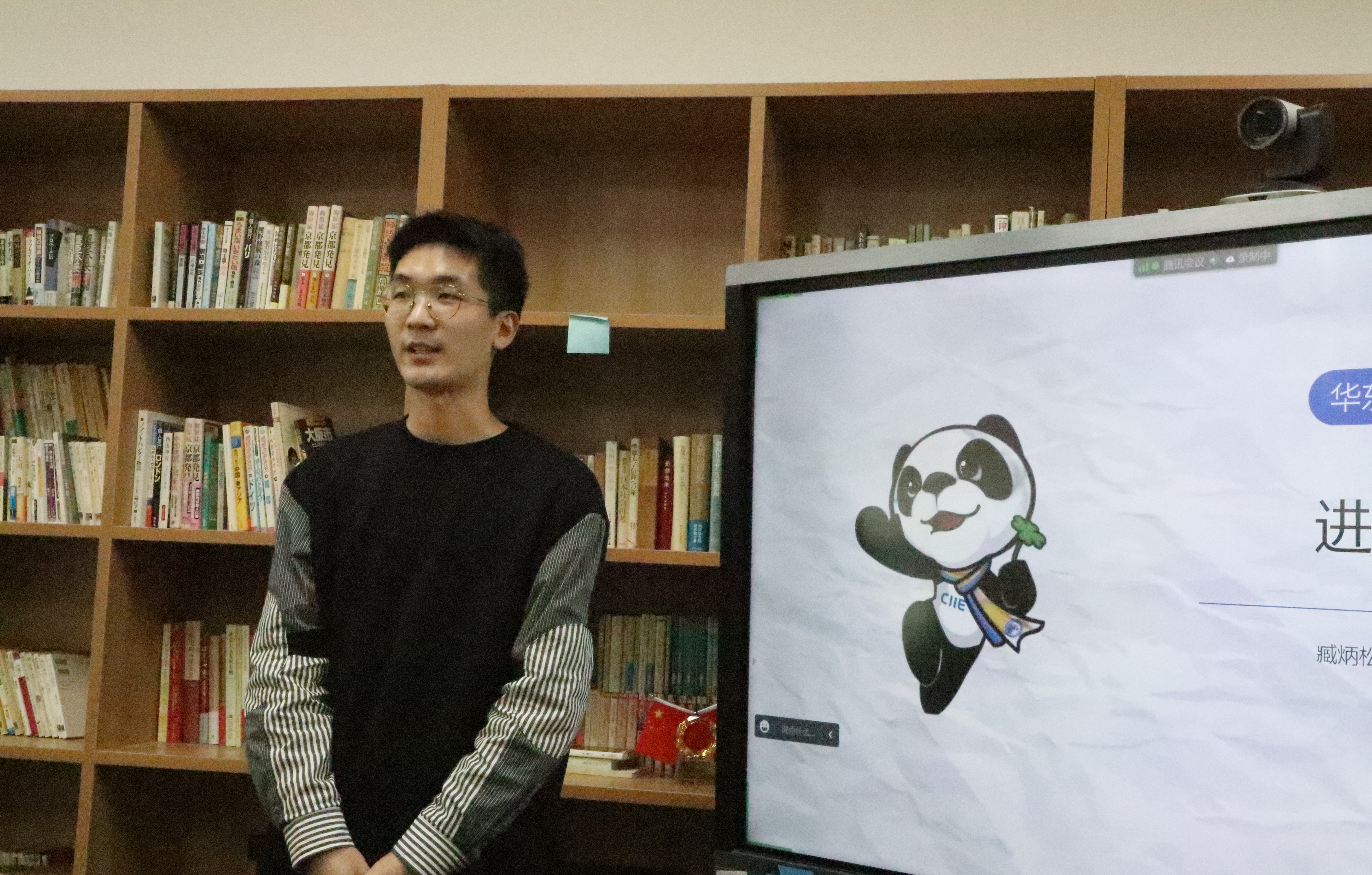 20级翻译专业本科生党员臧炳松在第四届进博会中作会务引导工作,他主要介绍了去年进博会的基本情况,用数据展示了进博会是我国高水平对外开放的重要平台。他还着重介绍了虹桥经济论坛,认为这一论坛体现了中国推动经济全球化和世界开放合作的努力和决心。